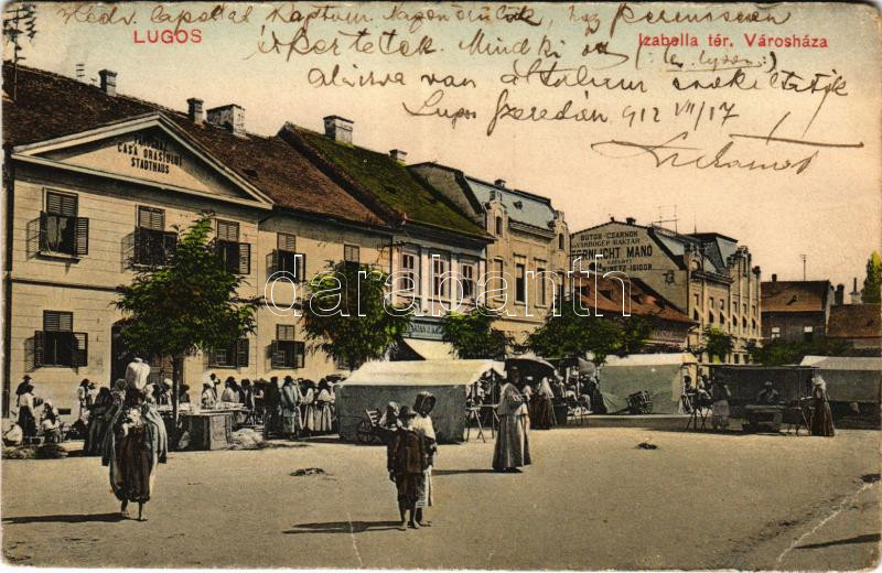 1912 Lugos, Lugoj; Izabella tér, Városháza, piac, Sternlicht Manó (eze... https://www.darabanth.com/hu/444-Gyorsarveres/444.0/Kepeslapok/Erdely~2000006/1912-Lugos-Lugoj-Izabella-ter-Varoshaza-piac-Sternlicht-Mano-ezelott-Winetz-Isidor-buto~II2927843