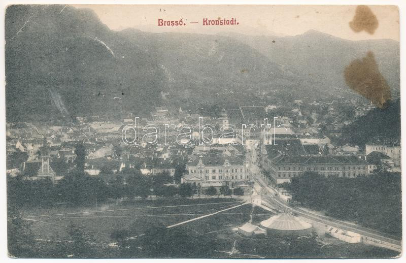 1914 Brassó, Kronstadt, Brasov; látkép, cirkuszi sátor. Glasz Károly k... https://www.darabanth.com/hu/444-Gyorsarveres/444.0/Kepeslapok/Erdely~2000006/1914-Brasso-Kronstadt-Brasov-latkep-cirkuszi-sator-Glasz-Karoly-kiadasa-general-view-c~II2931704
