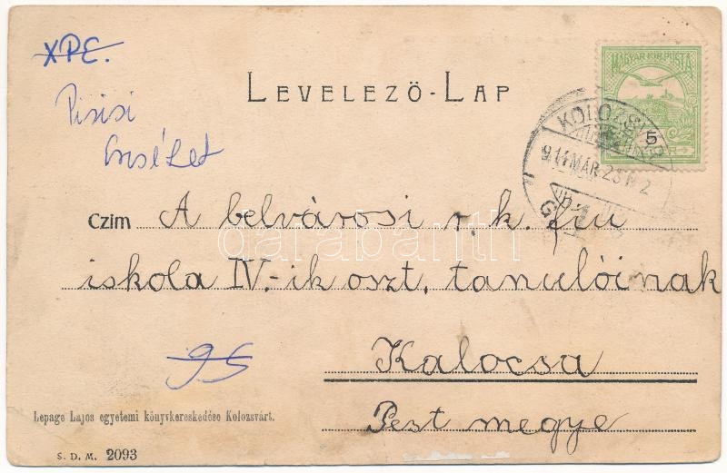 Leírás: 1914 Kolozsvár, Cluj; Piarista főgimnázium. Lepage Lajos kiadása / school (ázott / wet damage)