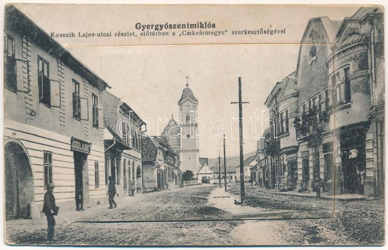 1917 Gyergyószentmiklós, Gheorgheni; Kossuth Lajos utca, Szőcs L. Albert üzlete. leporellólap 10 képpel / street view, shops. leporellocard with 10 pictures (EK)