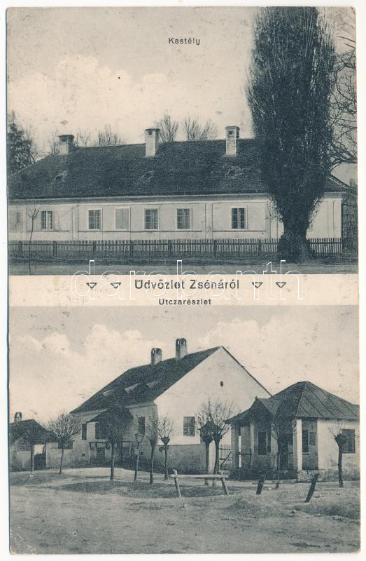 1917 Zséna, Jena (Temes, Timis); utca, kastély / street, castle (EK) https://www.darabanth.com/hu/444-Gyorsarveres/444.0/Kepeslapok/Erdely~2000006/1917-Zsena-Jena-Temes-Timis-utca-kastely-street-castle-EK~II2931818