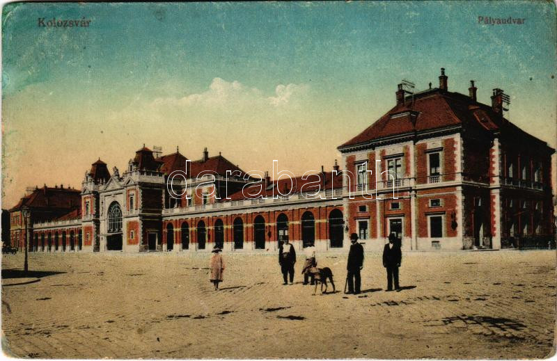 Leírás: 1918 Kolozsvár, Cluj; pályaudvar, vasútállomás. Vasúti levelezőlapárusítás 1-1916. / railway station (EK)
