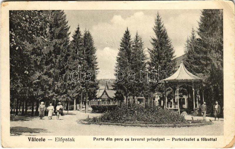 1925 Előpatak, Valcele; Park részlet a fő kúttal. Kiadja E. Téglas / Parte din parc cu izvorul principal / park, pavilion, well (ázott sarkak / wet corners)