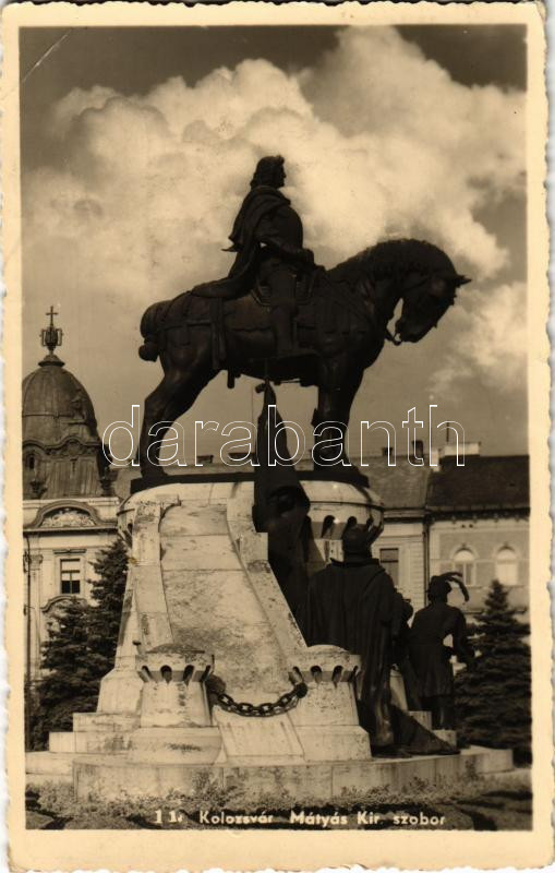 1940 Kolozsvár, Cluj; Mátyás király szobor / statue of Matthias Corvin... https://www.darabanth.com/hu/444-Gyorsarveres/444.0/Kepeslapok/Erdely~2000006/1940-Kolozsvar-Cluj-Matyas-kiraly-szobor-statue-of-Matthias-Corvinus-plus-1940-Kolozsvar-viss~II2925698