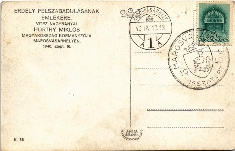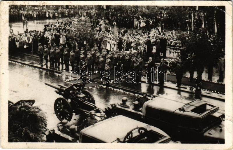 Leírás: 1940 Marosvásárhely, Targu Mures; bevonulás, tüzérség felvonulása Horthy előtt / entry of the Hungarian troops, artillery + "1940 Marosvásárhely visszatért" So. Stpl (EK)