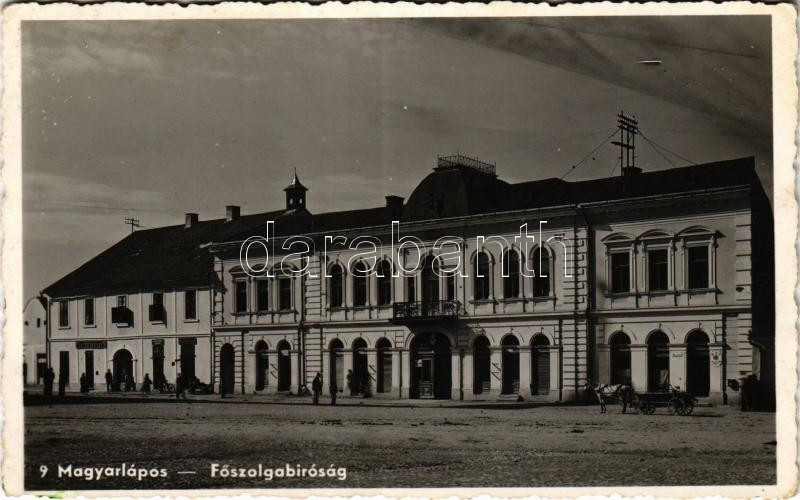 1941 Magyarlápos, Oláhlápos, Targu Lapus; Főszolgabíróság, Szentháromság gyógyszertár, M. kir. posta, üzletek / district court, pharmacy, post office, shops (EK)