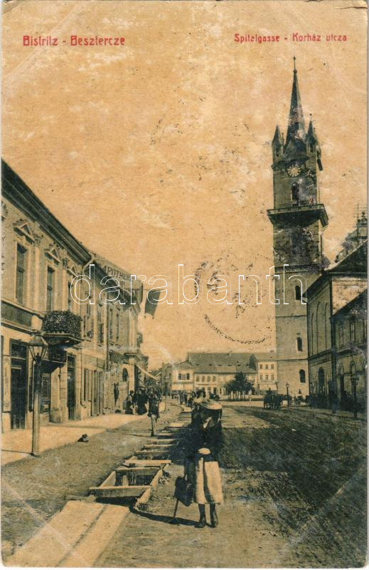 Beszterce, Bistritz, Bistrita; Kórház utca, gyógyszertár / Spitalgasse... https://www.darabanth.com/hu/444-Gyorsarveres/444.0/Kepeslapok/Erdely~2000006/Beszterce-Bistritz-Bistrita-Korhaz-utca-gyogyszertar-Spitalgasse-Apotheke-street-view-~II2890601