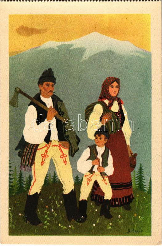 Csík-Háromszék, Ciuc-Trei Scaune; Csík-Háromszéki népviselet, folklór. Kiadja a Székely Egyetemi és Főiskolai Hallgatók Egyesülete / Hungarian irredenta art postcard, folklore, costumes of Trei Sacune s: Szilágyi J. - képeslapfüzetből / from postcard booklet