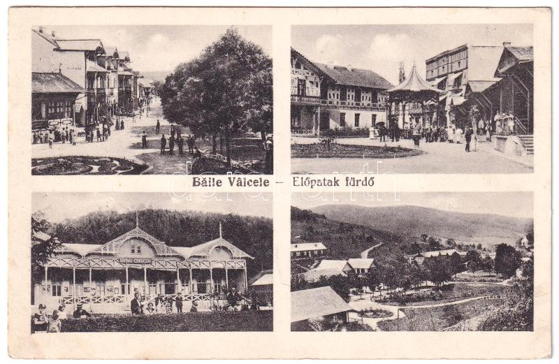 Leírás: Előpatak, Valcele; mozaiklap, kávéház és cukrászda, fürdő. Foto Adler Oscar / multi-view postcard, spa, café and confectionery (EK)