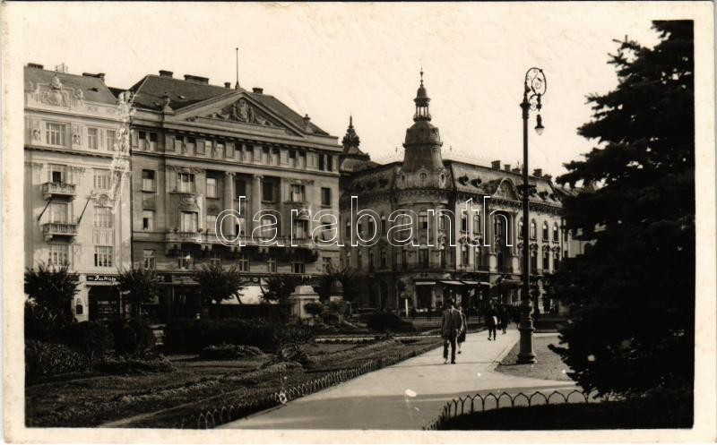 Kolozsvár, Cluj; Mátyás király téri részlet, üzletek / square, shops https://www.darabanth.com/hu/444-Gyorsarveres/444.0/Kepeslapok/Erdely~2000006/Kolozsvar-Cluj-Matyas-kiraly-teri-reszlet-uzletek-square-shops~II2932709