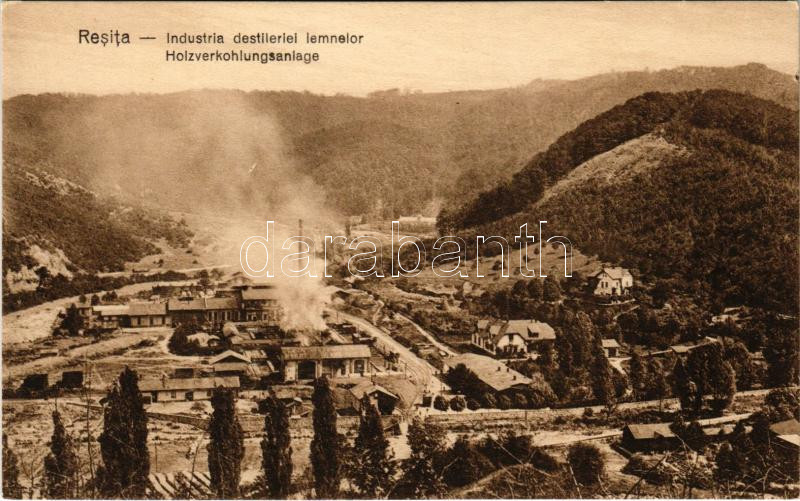 Resica, Resita; Industria destilleriei lemnelor / Holzverkohlungsanlag... https://www.darabanth.com/hu/444-Gyorsarveres/444.0/Kepeslapok/Erdely~2000006/Resica-Resita-Industria-destilleriei-lemnelor-Holzverkohlungsanlage-Faleparolo-telep-Brude~II2926547