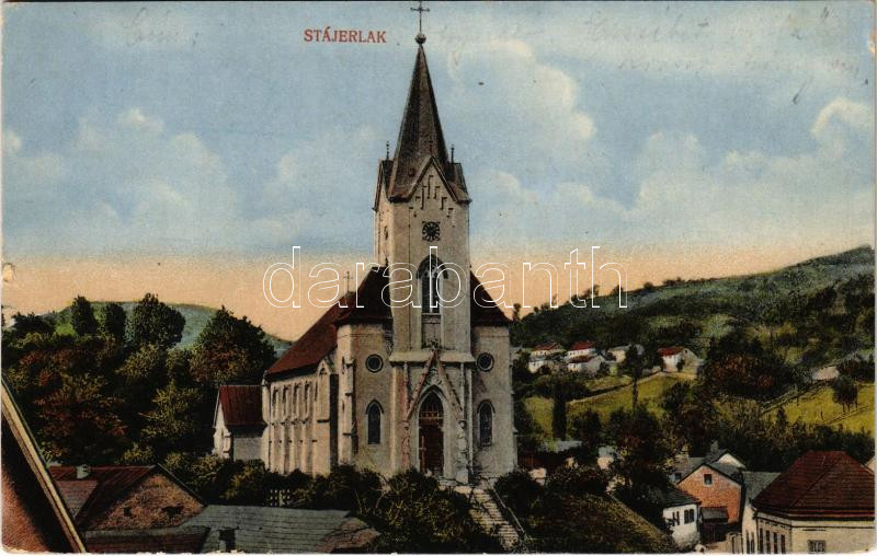 Leírás: Stájerlak, Steierlak, Stájerlakanina, Steierdorf, Anina; látkép a templommal / general view, church (kis szakadás / small tear)