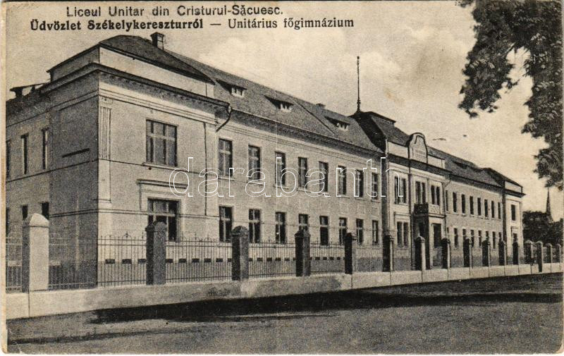 Székelykeresztúr, Kristur, Cristuru Secuiesc; Liceul Unitar din Cristurul-Sacuesc / Unitárius főgimnázium. Kiadja Ifj. Szemerjay Károly / Unitarian high school (Rb)