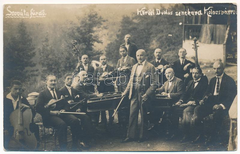 Szovátafürdő, Baile Sovata; Körösi Dudus cigány zenekara Kolozsvárról ... https://www.darabanth.com/hu/444-Gyorsarveres/444.0/Kepeslapok/Erdely~2000006/Szovatafurdo-Baile-Sovata-Korosi-Dudus-cigany-zenekara-Kolozsvarrol-gypsy-music-band-fro~II2932003
