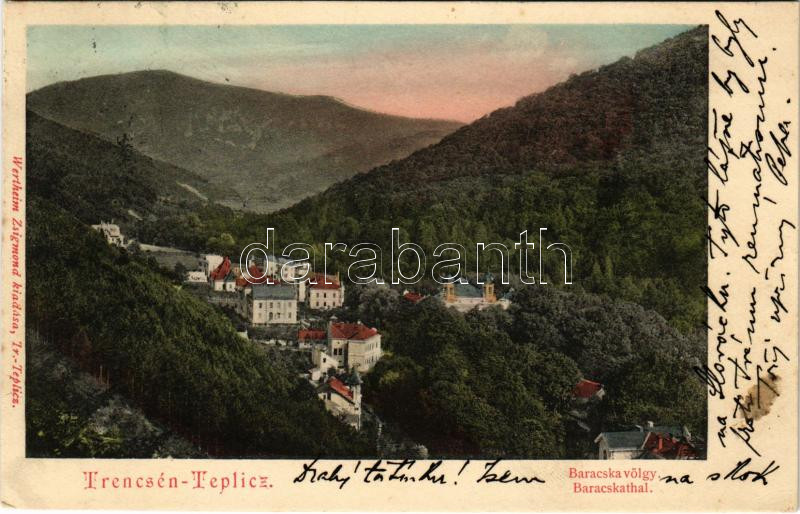 1906 Trencsénteplic, Trencianske Teplice; Baracska völgy. Wertheim Zsi... https://www.darabanth.com/hu/444-Gyorsarveres/444.0/Kepeslapok/Felvidek~2000007/1906-Trencsenteplic-Trencianske-Teplice-Baracska-volgy-Wertheim-Zsigmond-kiadasa-Baracska-Th~II2931758