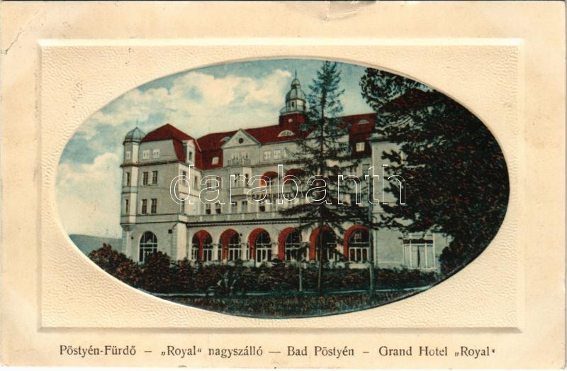 1913 Pöstyén, Piestany; Grand Hotel Royal Nagyszálló. Laufer Nándor ki... https://www.darabanth.com/hu/444-Gyorsarveres/444.0/Kepeslapok/Felvidek~2000007/1913-Postyen-Piestany-Grand-Hotel-Royal-Nagyszallo-Laufer-Nandor-kiadasa-hotel-spa-szak~II2926385
