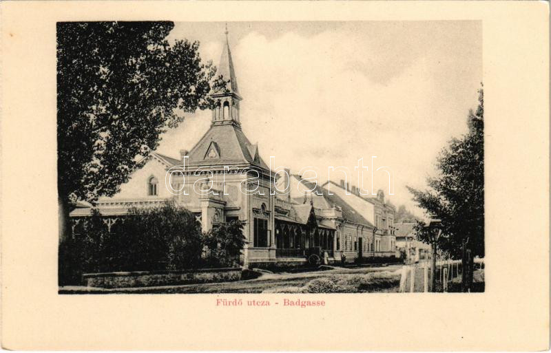 Pöstyén, Piestany; Fürdő utca / Badgasse / street view, spa (non PC) https://www.darabanth.com/hu/444-Gyorsarveres/444.0/Kepeslapok/Felvidek~2000007/Postyen-Piestany-Furdo-utca-Badgasse-street-view-spa-non-PC~II2926386