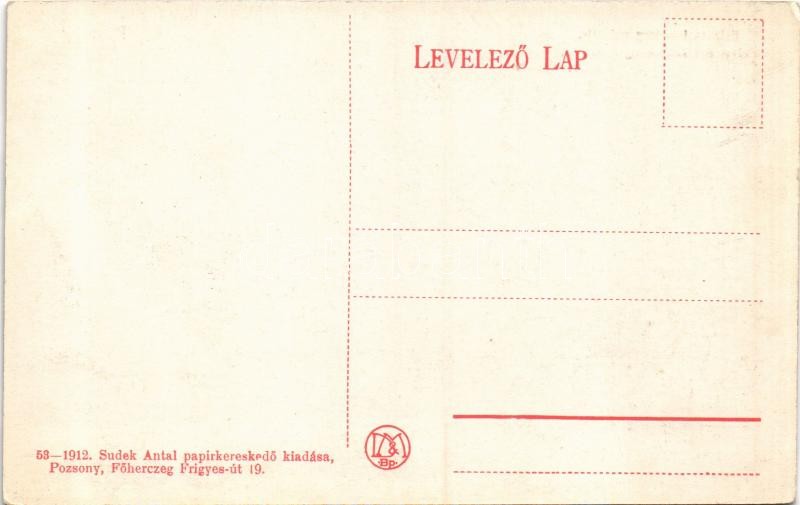 Leírás: Pozsony, Pressburg, Bratislava; Frigyes főherceg palotája. Sudek Antal 53. 1912. / Palais des Erzherzog Friedrich / archducal palace (fa)