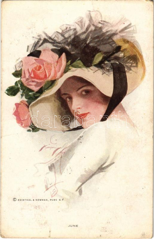 Leírás: 1919 "June" Lady art postcard. Reinthal & Newman No. 615. s: Harrison Fisher (fl)