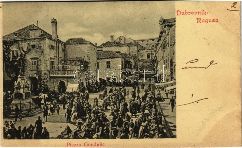 Leírás: 1902 Dubrovnik, Ragusa; Piazza Gundulic / piac / market