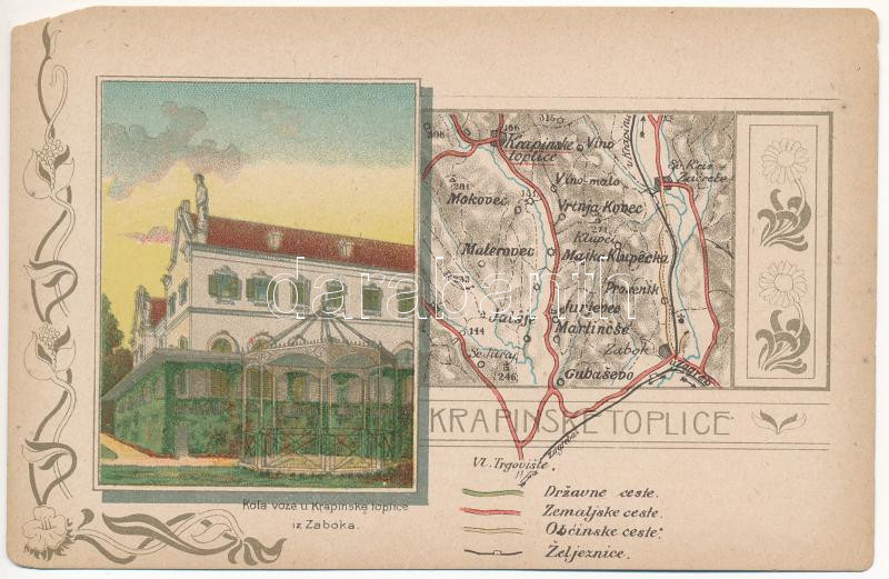Leírás: Krapinske Toplice, Krapina-Töplitz; Kola voze iz Zaboka. Art Nouveau litho map (EM)