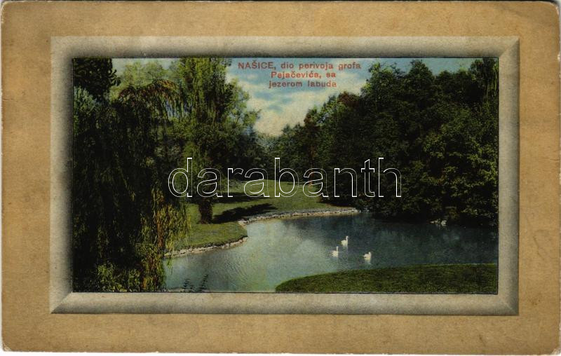 Leírás: Nekcse, Nasice; Gróf Pejacsevich kastély parkja. Antun Blau kiadása / Dio perivoja grofa Pejachevicha sa jezerom labuda / castle park, swan lake (EK)