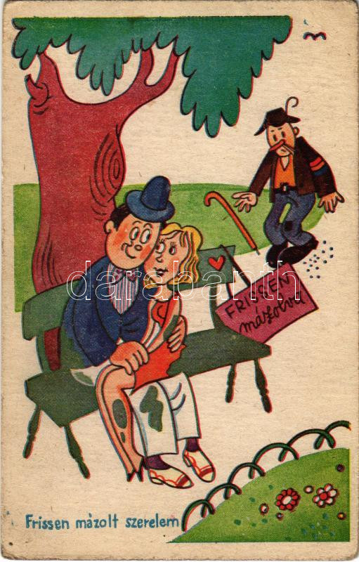 1944 Frissen mázolt szerelem / humour art postcard (EK) https://www.darabanth.com/hu/444-Gyorsarveres/444.0/Kepeslapok/Humor~2000036/1944-Frissen-mazolt-szerelem-humour-art-postcard-EK~II2931979