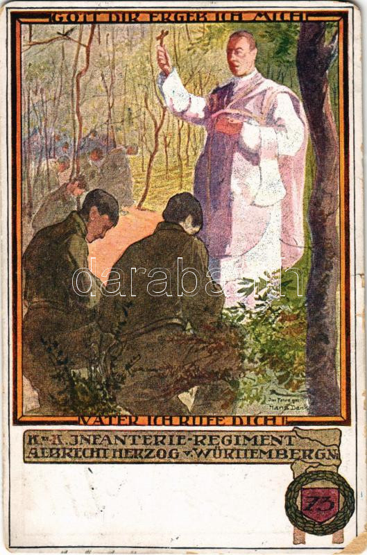 1916 Vater ich rufe Dich! K.u.K. Infanterieregiment Nr. 73. Albrecht Herzog v. Wüttemberg / WWI Austro-Hungarian K.u.K. military art postcard s: Hans Denk (EM)