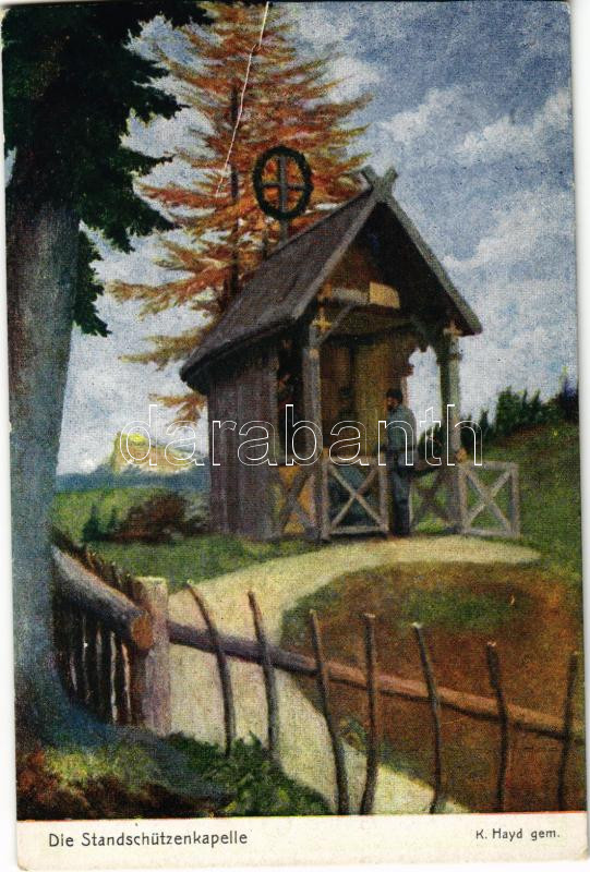 1917 Die Standschützenkapelle. Offizielle Karte für Rotes Kreuz, Kriegsfürsorgeamt, Kriegshilfsbüro Nr. 368. / WWI Austro-Hungarian K.u.K. military art postcard, field chapel, support fund s: K. Hayd (vágott / cut)