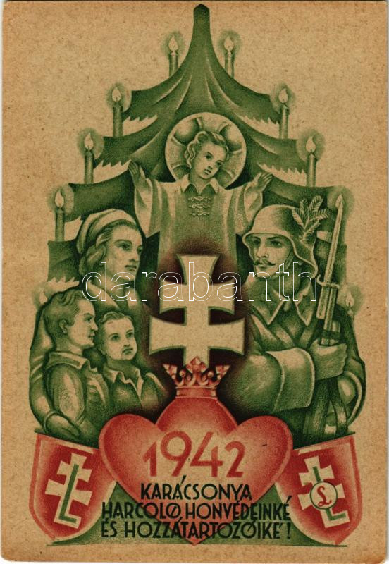 1942 Karácsonya Harcoló honvédeinké és hozzátartozóiké, Leventeifjúság honvédkarácsonya. Tábori Postai Levelezőlap / WWII Hungarian military field postcard with Christmas greeting s: Légrády S. (EK)