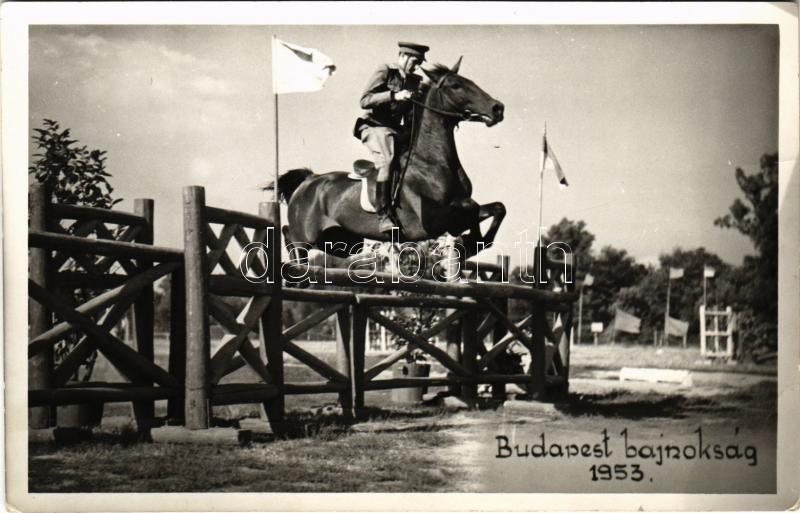1953 Budapest bajnokság, katonai lóugrató verseny, Bandi a győztes ugr... https://www.darabanth.com/hu/444-Gyorsarveres/444.0/Kepeslapok/Katonai~2000045/1953-Budapest-bajnoksag-katonai-lougrato-verseny-Bandi-a-gyoztes-ugrato-Foto-Gulyas-Alag-~II2482629