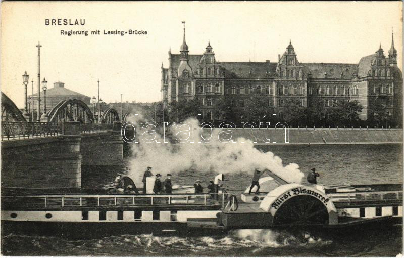 Wroclaw, Breslau; Regierung mit Lessing-Brücke / bridge, "FÜRST B... https://www.darabanth.com/hu/444-Gyorsarveres/444.0/Kepeslapok/Lengyelorszag~2000056/Wroclaw-Breslau-Regierung-mit-Lessing-Brucke-bridge-FURST-BISMARCK-steamship~II2929453