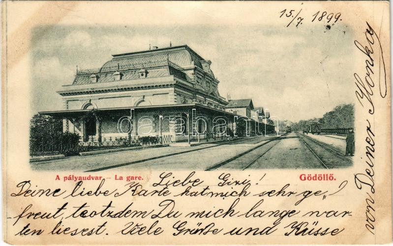 1899 (Vorläufer) Gödöllő, Pályaudvar, vasútállomás (EM) https://www.darabanth.com/hu/444-Gyorsarveres/444.0/Kepeslapok/Magyarorszag~2000005/1899-Vorlaufer-Godollo-Palyaudvar-vasutallomas-EM~II2934374