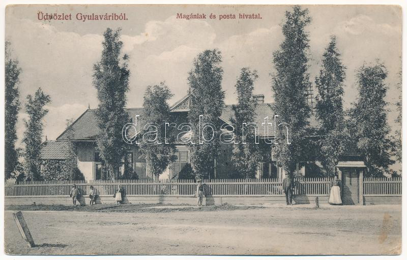 Leírás: 1912 Gyulavári (Gyula), magánlak és posta hivatal. Békés Gy. udv. fényképész (Rb)