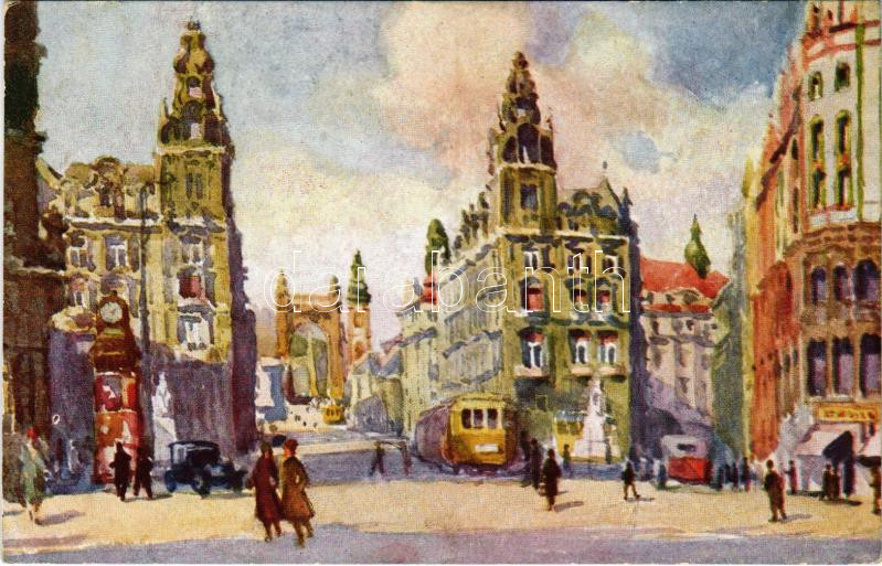 Leírás: Budapest V. Apponyi tér, Klotild paloták, villamos. Modern No. 15. Bp. Aquarell 1927. (EK)