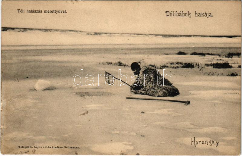 Hortobágy, Délibábok hazája, téli halászás merettyűvel. Telegdi K. Laj... https://www.darabanth.com/hu/444-Gyorsarveres/444.0/Kepeslapok/Magyarorszag~2000005/Hortobagy-Delibabok-hazaja-teli-halaszas-merettyuvel-Telegdi-K-Lajos-utoda-kiadasa-Ha~II2934699