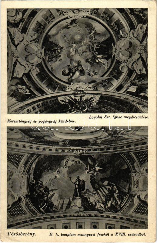 Vörösberény (Balatonalmádi), Római katolikus templom mennyezet freskói a XVIII. századból, Loyolai Szt. Ignác megdicsőülése és Kereszténység és pogányság küzdelme (EK)