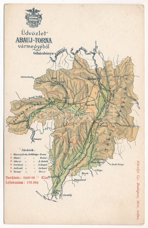 Abaúj-Torna vármegye térképe. Kiadja Károlyi Gy. / Map of Abovsko-turn... https://www.darabanth.com/hu/444-Gyorsarveres/444.0/Kepeslapok/Terkep~2000073/Abauj-Torna-varmegye-terkepe-Kiadja-Karolyi-Gy-Map-of-Abovsko-turnianska-county-EK~II2871294