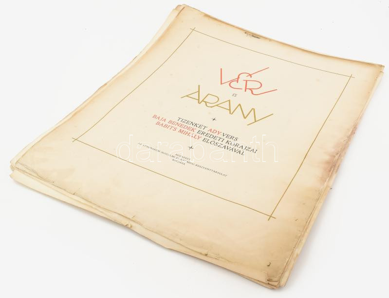 Ady (Endre): Vér és arany. Tizenkét ~vers. Baja Benedek eredeti kőrajzai. Babits Mihály előszavával.