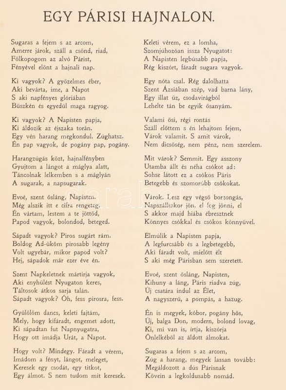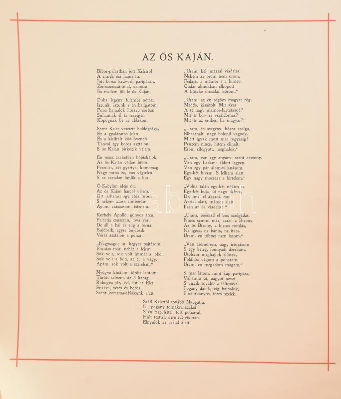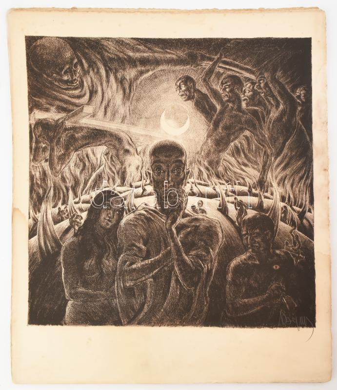 Bp., (1924.) Athenaeum. 15 számozatlan, önálló levél+12t. (aláírt, eredeti kőnyomatok) Nem számozott A művész elsősorban díszlet- és jelmeztervezőként volt ismert, nagyméretű (485 x 475 [630 x 530] mm) litográfiák 1 rajzos tábla hiányzik, több lapon vízfoltok, mappa sérült, megviselt állapotban