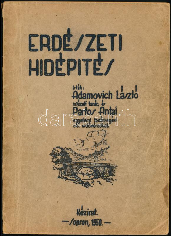 Adamovich László - Partos Antal: Erdészeti hídépítés. (Kézirat). Sopron, 1950, Műszaki Egyetem Sokszorosító Műhelye, 279 p. Számos ábrával illusztrálva. Kiadói papírkötés, sérült gerinccel.
