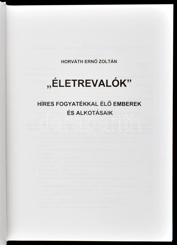 Horváth Ernő Zoltán: ,,Életrevalók." Híres fogyatékkal élő embere... https://www.darabanth.com/hu/444-Gyorsarveres/444.0/Konyvek/Konyvek-Epiteszet-muveszet~1500014/Horvath-Erno-Zoltan-Eletrevalok-Hires-fogyatekkal-elo-emberek-es-alkotasaik-Bp-~II2895502