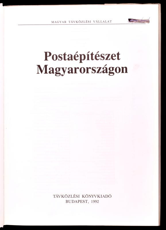 Postaépítészet Magyarországon. Szerk.: Bakos János, Kiss Antalné, Kovács Gergelyné. Bp., 1992, Távközlési Könyvkiadó. Fekete-fehér és színes képekkel illusztrálva. Kiadói egészvászon-kötés, kiadói papír védőborítóban.