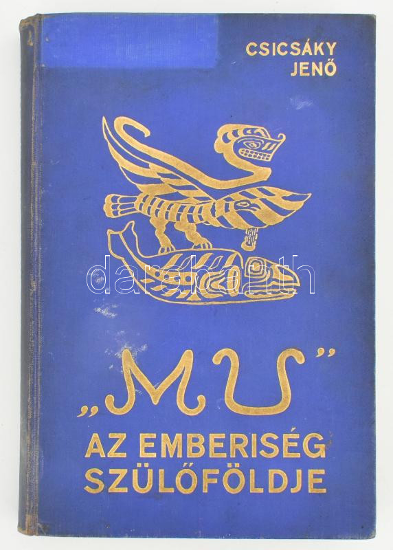 Csicsáky Jenő: Mu az emberiség szülőföldje. (Függelék: A magyarság eredete). Bp., 1938, K. M. Egyetemi Nyomda, 226+(2) p. + 11 t. Egészoldalas, fekete-fehér képekkel illusztrált. Kiadói aranyozott vászon-kötés, kis kopással