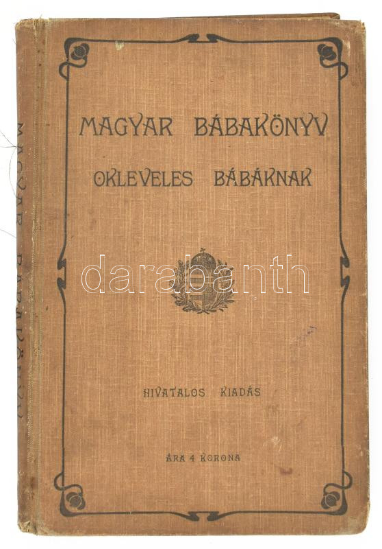 Magyar bábakönyv okleveles bábáknak. (Hivatalos kiadás). Bp., 1902, M. Kir. Állami Nyomda, 292 p. Első kiadás. Szövegközi és egészoldalas illusztrációkkal. Kiadói egészvászon-kötés, kissé viseltes, sérült borítóval, helyenként kissé sérült, foltos lapokkal.