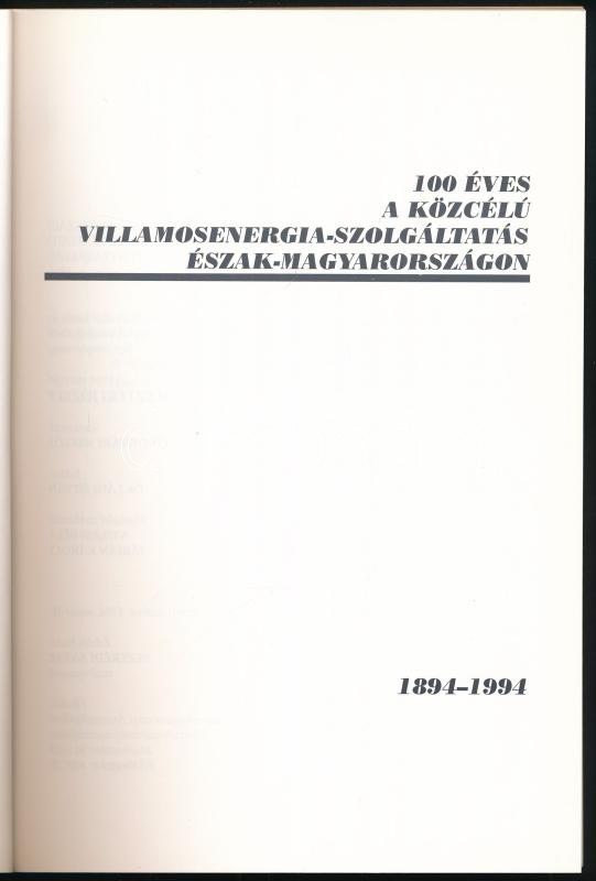 Leírás: Beszteri József: 100 éves a közcélú a villamosenergia-szolgáltatás Észak-Magyarországon. 1894-1994. Szerk.: Ónodvári Miklós. Miskolc, 1994, Észak-Magyarországi Áramszolgáltató Rt. Kiadói aranyozott bársony-kötés, jó állapotban.
