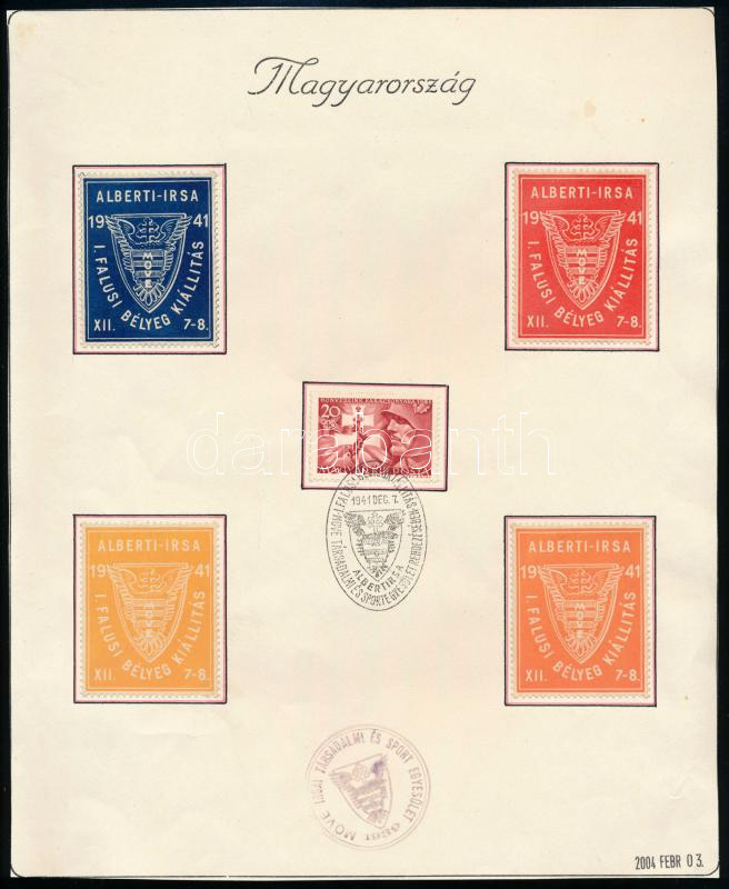 1941 Alberti-Irsa I. Falusi bélyeg kiállítás 4 db levélzáró emléklapon https://www.darabanth.com/hu/444-Gyorsarveres/444.0/Magyar-filatelia-es-postatortenet/Parafilatelia~500020/1941-Alberti-Irsa-I-Falusi-belyeg-kiallitas-4-db-levelzaro-emleklapon~II2931433