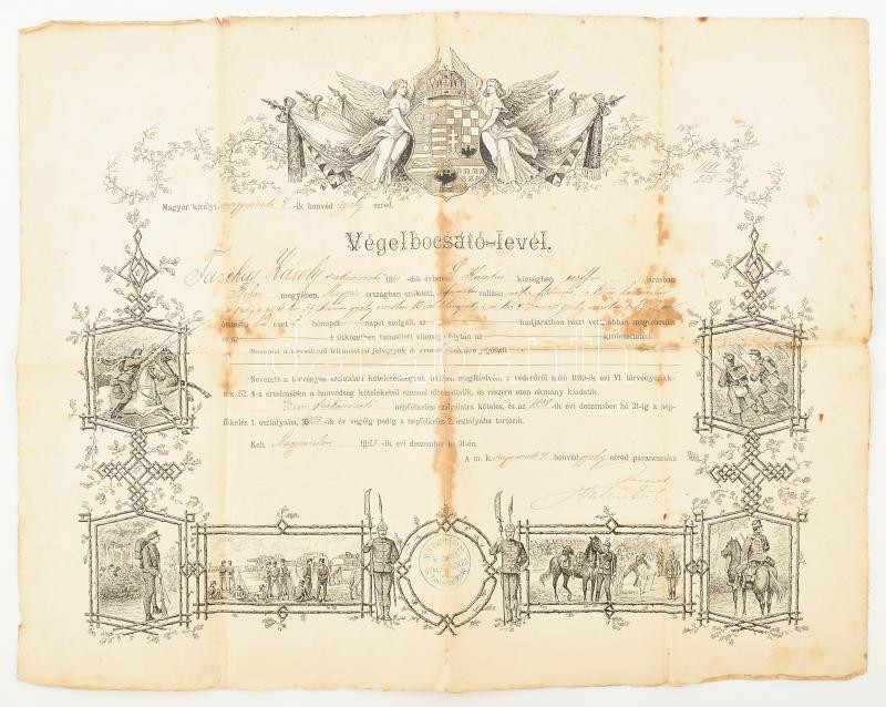 1893 Nagyvárad, katonai végelbocsátó levél