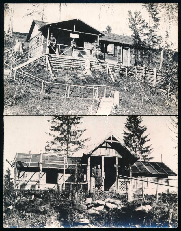 Leírás: 1919 Tiszti lak a román harctéren, 2 db fotólap, egyik hátoldalon feliratozva, 9×13 cm