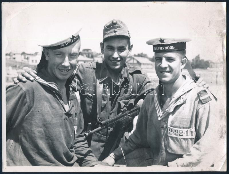 1945 Magyar katona szovjet tengerészekkel, Szendrő István (1908-2000) ... https://www.darabanth.com/hu/444-Gyorsarveres/444.0/Mutargy-papirregiseg-egyeb/Militaria~1500001/1945-Magyar-katona-szovjet-tengereszekkel-Szendro-Istvan-1908-2000-pecsettel-jelzett-fotoja-~II2899601